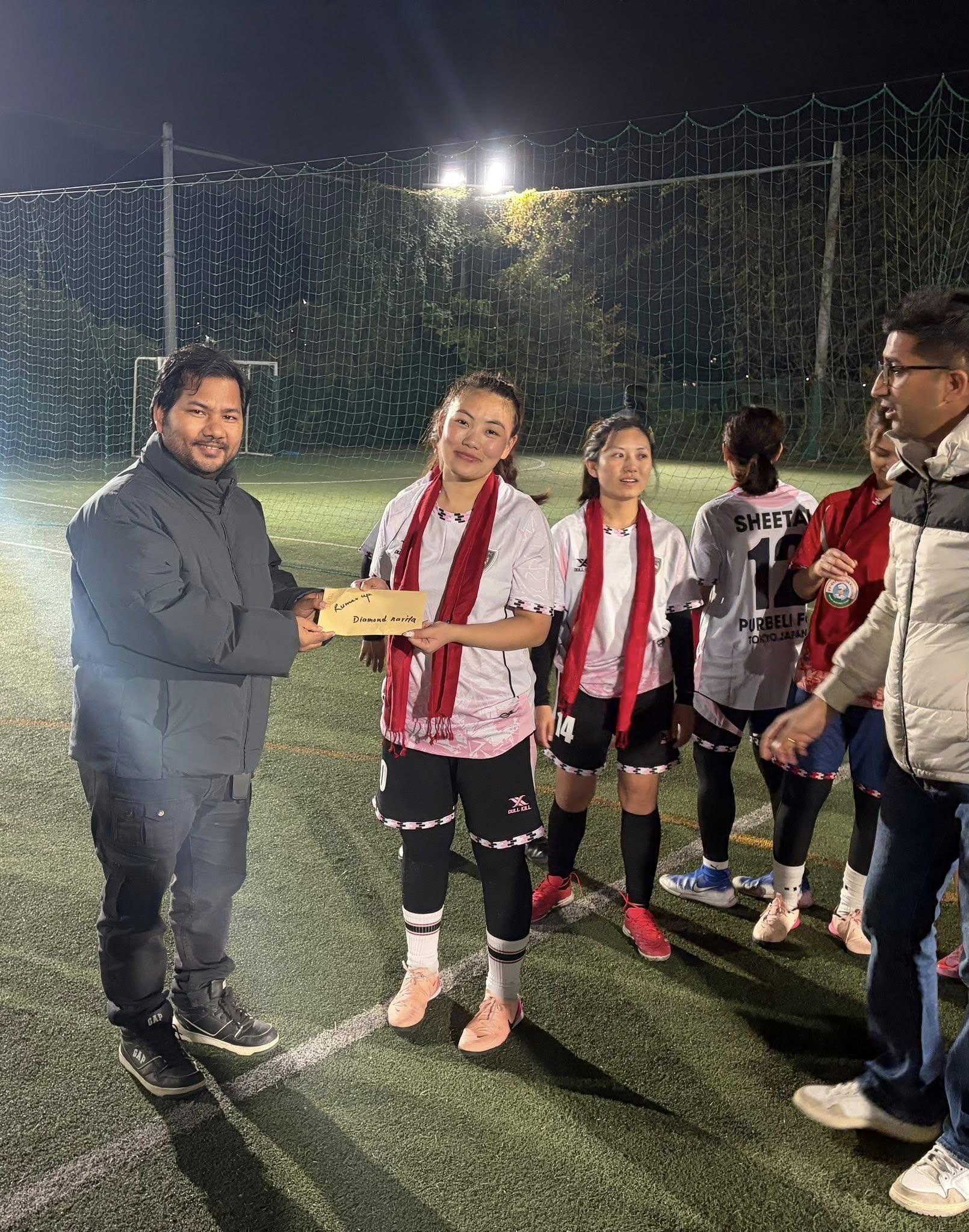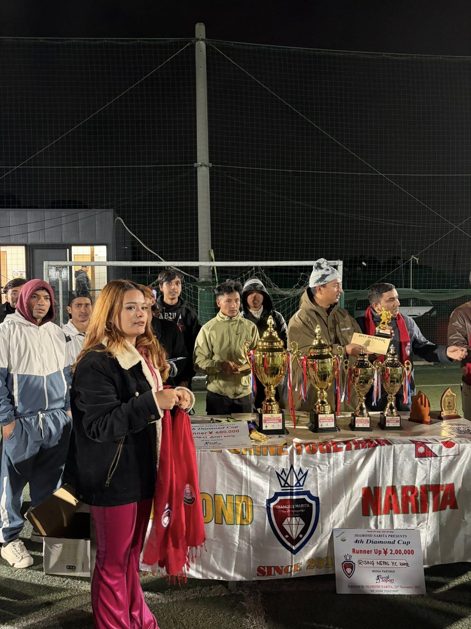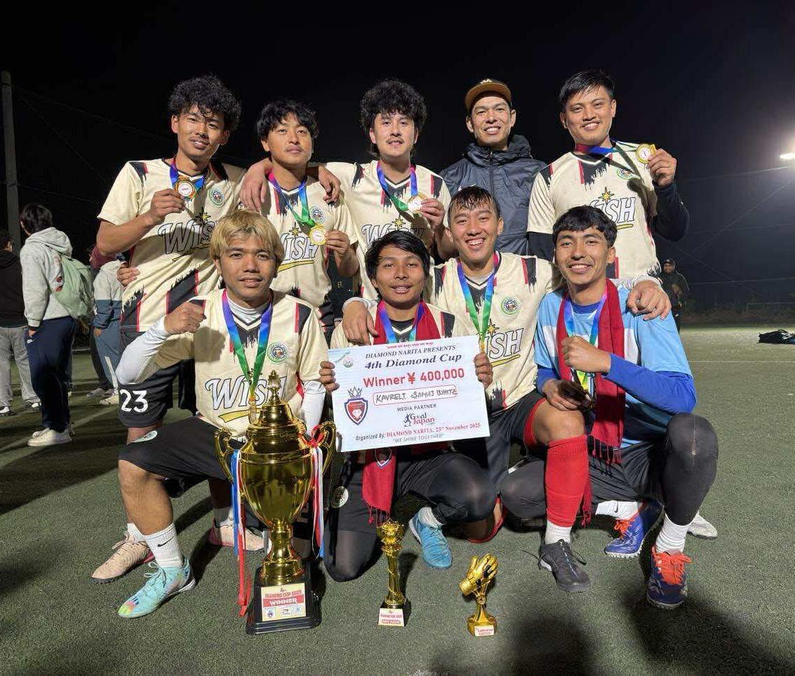 नागरेयामा शहरस्थित Z Futsal Sport Nagareyama मा आयोजित 4th Diamond Cup 2025 को रोमाञ्चक प्रतिस्पर्धा सम्पन्न भएको छ, जहाँ KAVRELI SAMAJ JAPAN WHITE ले उत्कृष्ट खेल प्रदर्शन गर्दै उपाधि हात पारेको छ। पहिलो सेमिफाइनलमा All Star FC White लाई ३–१ ले पराजित गर्दै KAVRELI SAMAJ JAPAN WHITE सहज रूपमा फाइनलमा प्रवेश गरेको थियो। दोस्रो सेमिफाइनलमा Rising Nepal Youth Club White ले Oizumi FC विरुद्ध १–० को कडा जित दर्ता गर्दै निर्णायक भिडन्तको लागि स्थान सुरक्षित गर्यो।